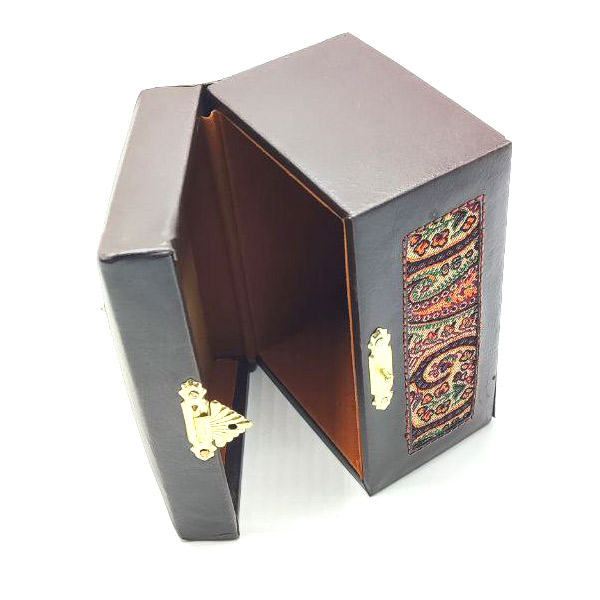 جعبه جواهرات چرم با دور دوزی ترمه سایز مستطیل کوچک